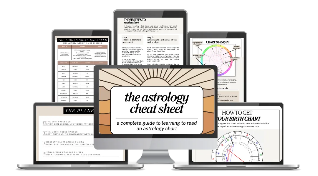 The Astrology Cheat Sheet gives you the keywords, symbols, and framework to make sense of your chart—and any transit—in minutes.